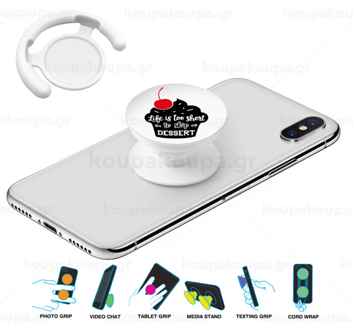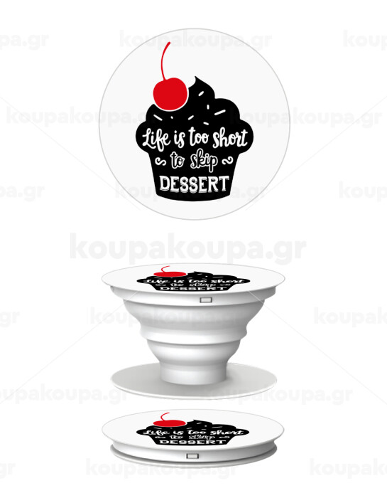 Life is too short, to skip Dessert, Phone Holders Stand White Hand-held Mobile Phone Holder