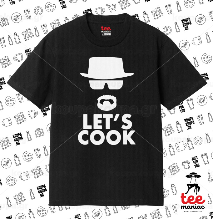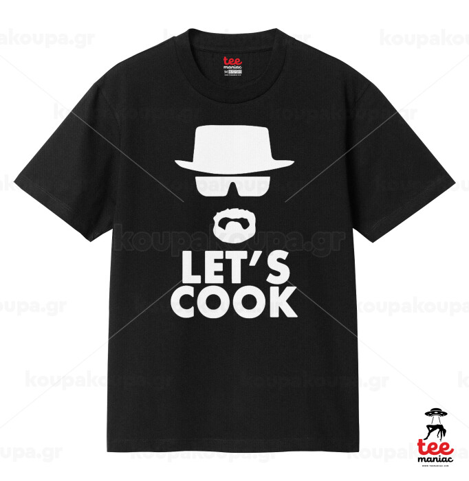 Let's cook, Κλασικό T-Shirt, διπλής ραφής, χωρίς πλευρικές ραφές ΜΑΥΡΟ από 100% βαμβάκι. Vegan & OEKO-TEX πιστοποιημένο.