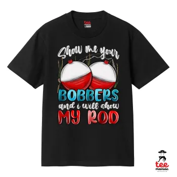 Show me your bobbers and i will show my rod , Κλασικό T-Shirt, διπλής ραφής, χωρίς πλευρικές ραφές ΜΑΥΡΟ από 100% βαμβάκι. Vegan & OEKO-TEX πιστοποιημένο.