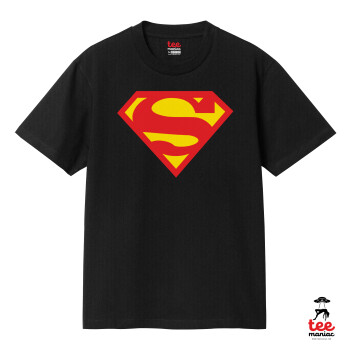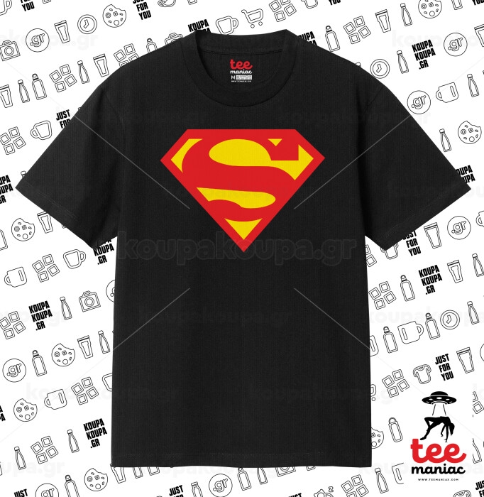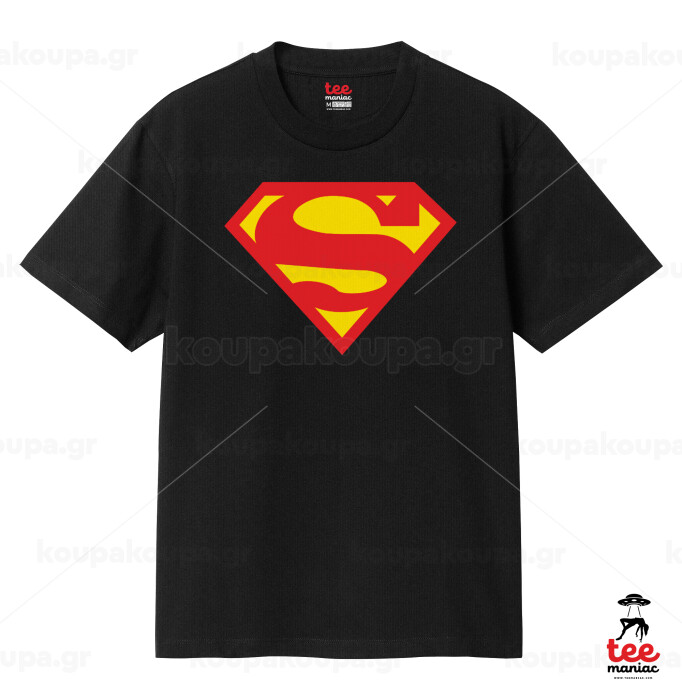 Superman, Κλασικό T-Shirt, διπλής ραφής, χωρίς πλευρικές ραφές ΜΑΥΡΟ από 100% βαμβάκι. Vegan & OEKO-TEX πιστοποιημένο.