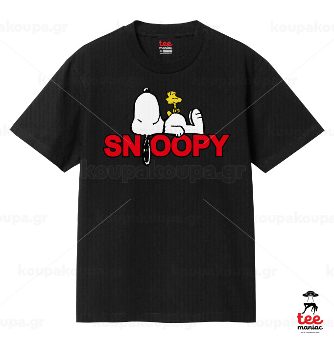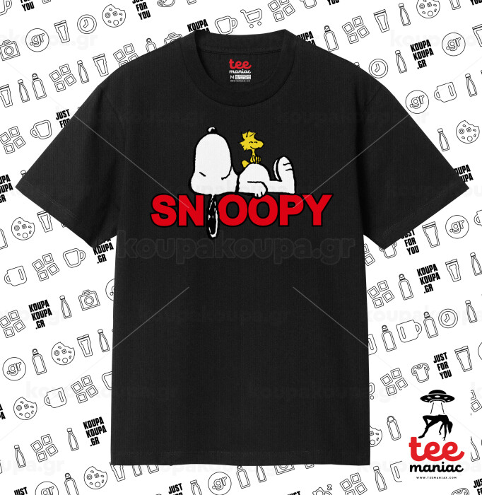 Snoopy sleep, Κλασικό T-Shirt, διπλής ραφής, χωρίς πλευρικές ραφές ΜΑΥΡΟ από 100% βαμβάκι. Vegan & OEKO-TEX πιστοποιημένο.