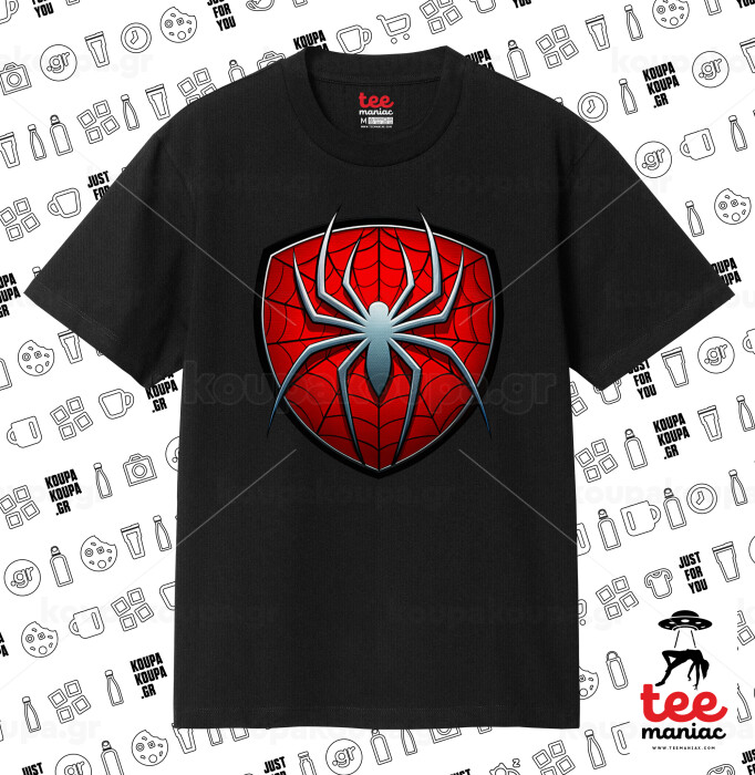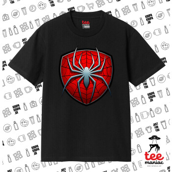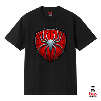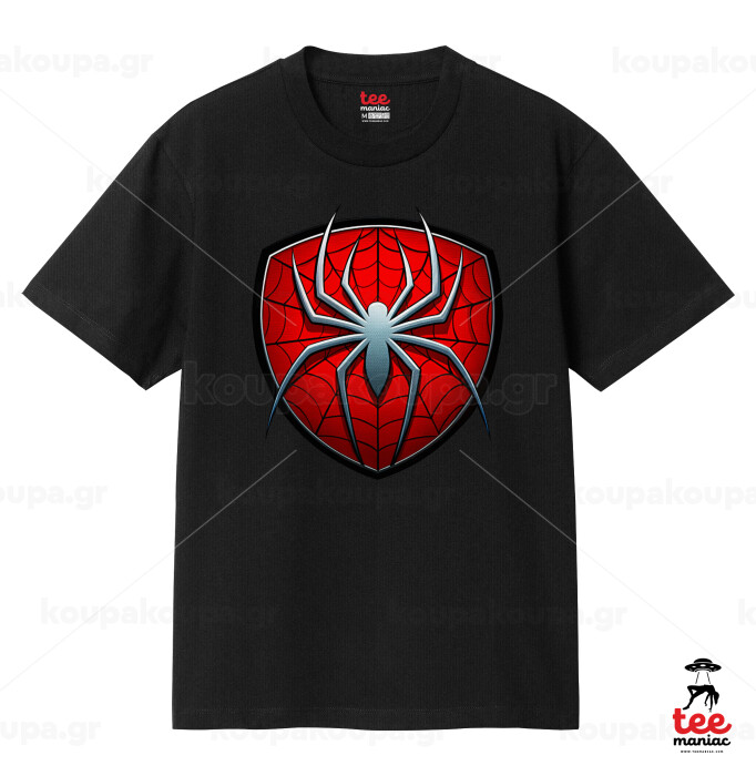 Spider-man, Κλασικό T-Shirt, διπλής ραφής, χωρίς πλευρικές ραφές ΜΑΥΡΟ από 100% βαμβάκι. Vegan & OEKO-TEX πιστοποιημένο.