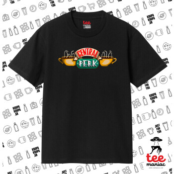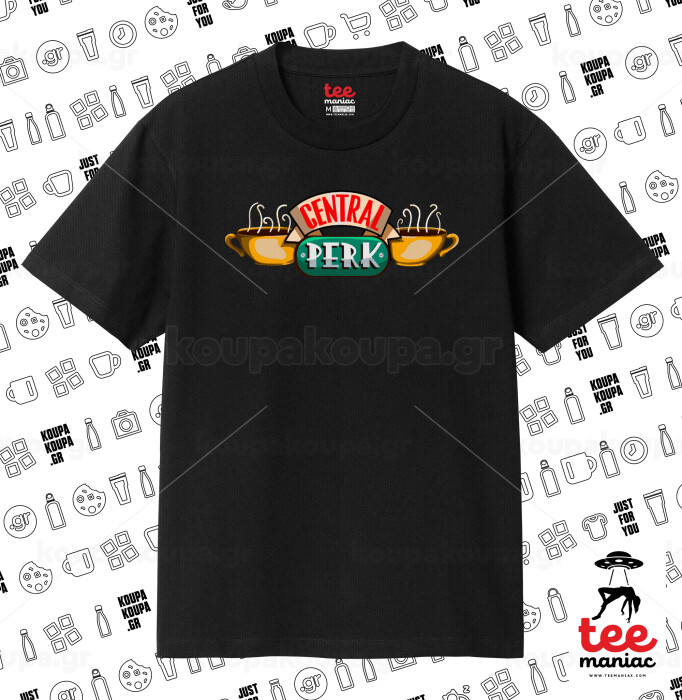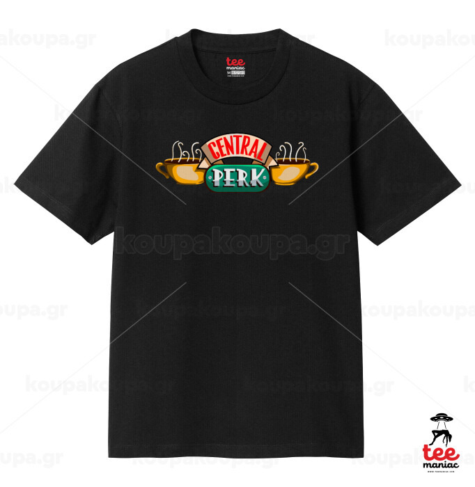 Central perk, Κλασικό T-Shirt, διπλής ραφής, χωρίς πλευρικές ραφές ΜΑΥΡΟ από 100% βαμβάκι. Vegan & OEKO-TEX πιστοποιημένο.