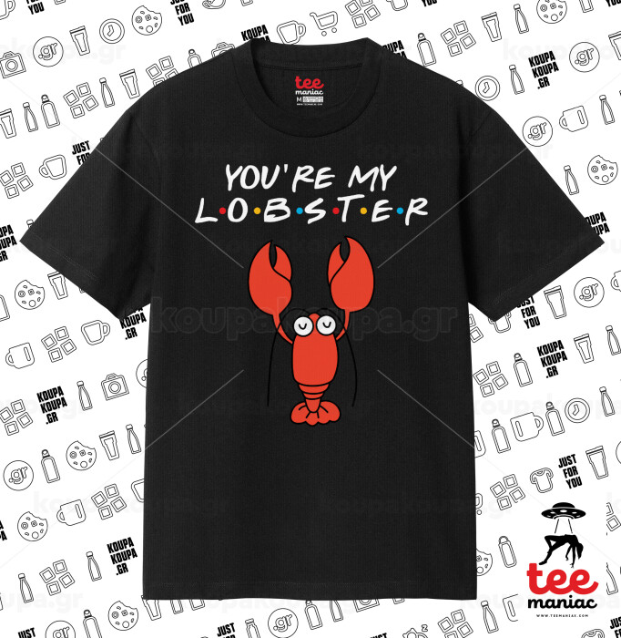 Friends you're my lobster, Κλασικό T-Shirt, διπλής ραφής, χωρίς πλευρικές ραφές ΜΑΥΡΟ από 100% βαμβάκι. Vegan & OEKO-TEX πιστοποιημένο.