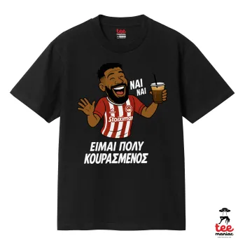 Ροντινέι, "ΠΟΛΥ ΚΟΥΡΑΣΜΕΝΟΣ", Κλασικό T-Shirt, διπλής ραφής, χωρίς πλευρικές ραφές ΜΑΥΡΟ από 100% βαμβάκι. Vegan & OEKO-TEX πιστοποιημένο.