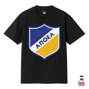 FC ΑΠΟΕΛ Λευκωσίας, Κλασικό T-Shirt, διπλής ραφής, χωρίς πλευρικές ραφές ΜΑΥΡΟ από 100% βαμβάκι. Vegan & OEKO-TEX πιστοποιημένο.