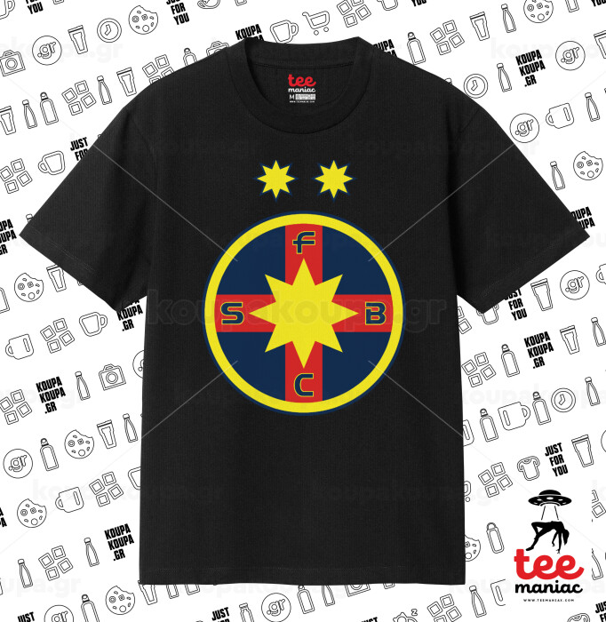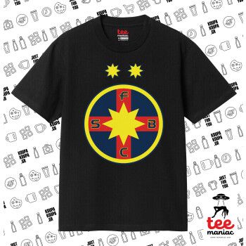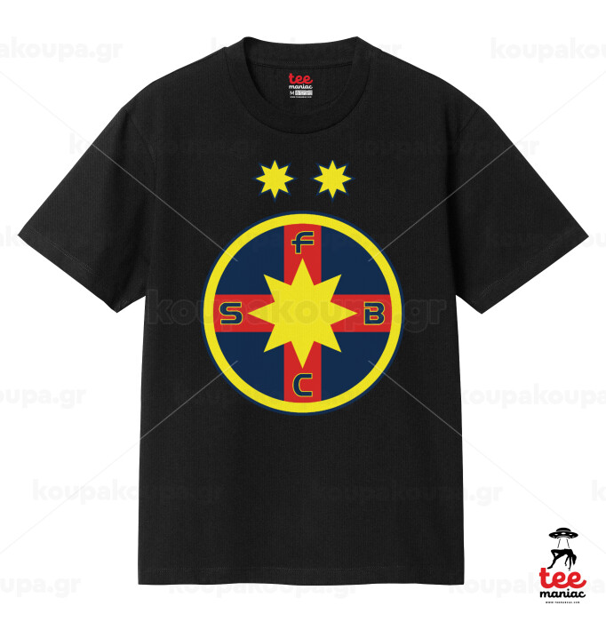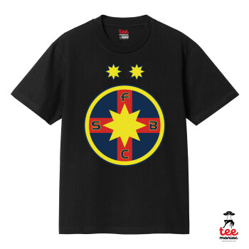 FC Steaua Bucuresti (FCSB), Κλασικό T-Shirt, διπλής ραφής, χωρίς πλευρικές ραφές ΜΑΥΡΟ από 100% βαμβάκι. Vegan & OEKO-TEX πιστοποιημένο.