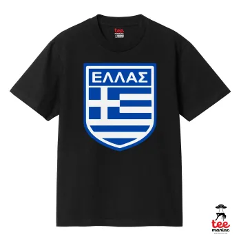 Hellas, Κλασικό T-Shirt, διπλής ραφής, χωρίς πλευρικές ραφές ΜΑΥΡΟ από 100% βαμβάκι. Vegan & OEKO-TEX πιστοποιημένο.