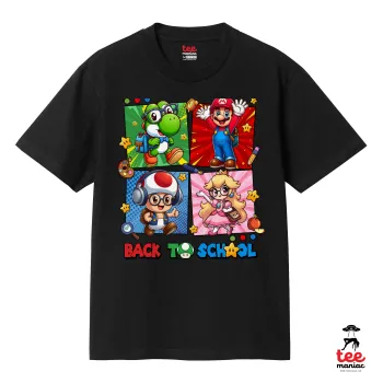 Back to the School Mario & Friends, Κλασικό T-Shirt, διπλής ραφής, χωρίς πλευρικές ραφές ΜΑΥΡΟ από 100% βαμβάκι. Vegan & OEKO-TEX πιστοποιημένο.