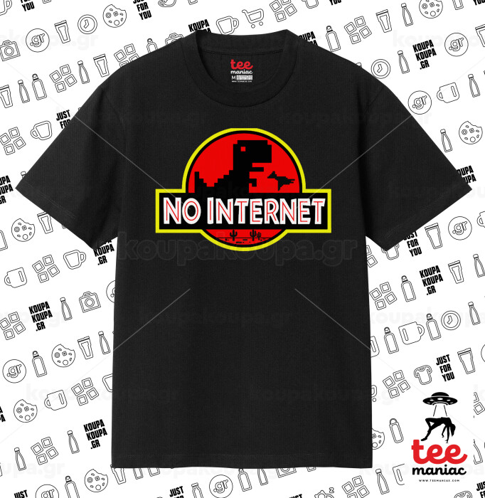 No internet, Κλασικό T-Shirt, διπλής ραφής, χωρίς πλευρικές ραφές ΜΑΥΡΟ από 100% βαμβάκι. Vegan & OEKO-TEX πιστοποιημένο.
