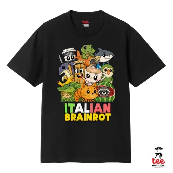 Italian Brainrot friends, Κλασικό T-Shirt, διπλής ραφής, χωρίς πλευρικές ραφές ΜΑΥΡΟ από 100% βαμβάκι. Vegan & OEKO-TEX πιστοποιημένο.