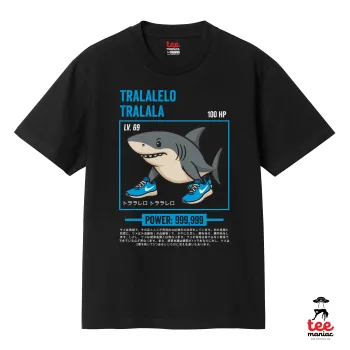Tralalero Tralala, Κλασικό T-Shirt, διπλής ραφής, χωρίς πλευρικές ραφές ΜΑΥΡΟ από 100% βαμβάκι. Vegan & OEKO-TEX πιστοποιημένο.