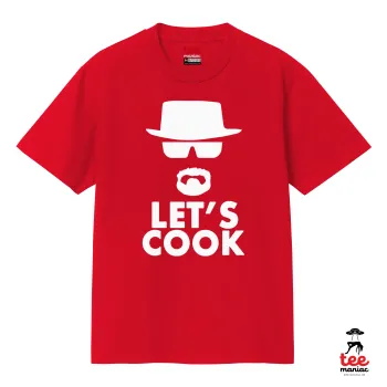 Let's cook, Κλασικό T-Shirt, διπλής ραφής, χωρίς πλευρικές ραφές ΚΟΚΚΙΝΟ από 100% βαμβάκι. Vegan & OEKO-TEX πιστοποιημένο.