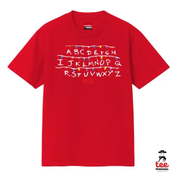 Stranger Things ABC, Κλασικό T-Shirt, διπλής ραφής, χωρίς πλευρικές ραφές ΚΟΚΚΙΝΟ από 100% βαμβάκι. Vegan & OEKO-TEX πιστοποιημένο.