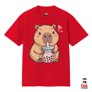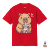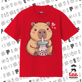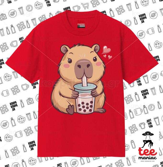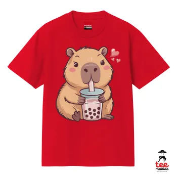 Capybara Bubble Tea, Κλασικό T-Shirt, διπλής ραφής, χωρίς πλευρικές ραφές ΚΟΚΚΙΝΟ από 100% βαμβάκι. Vegan & OEKO-TEX πιστοποιημένο.