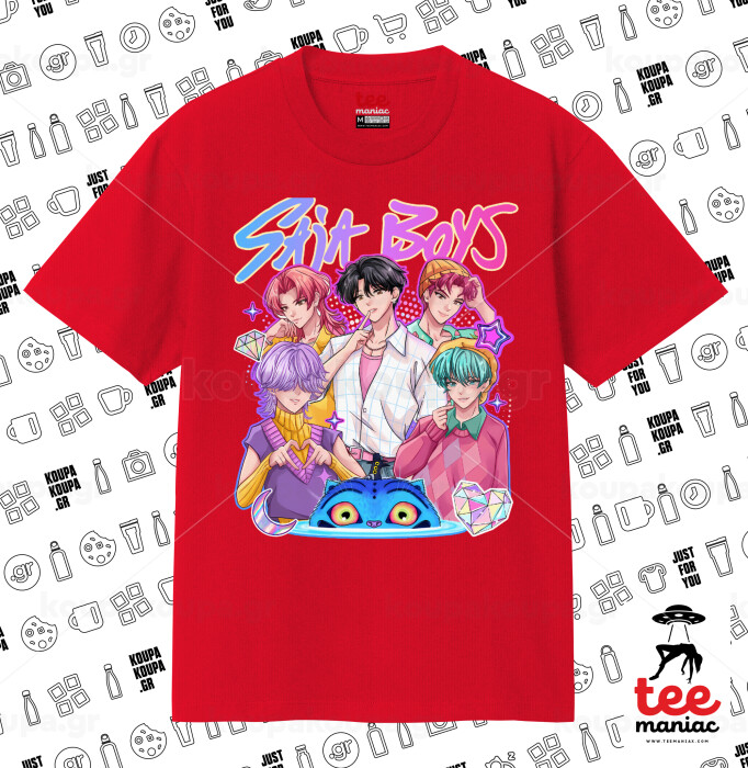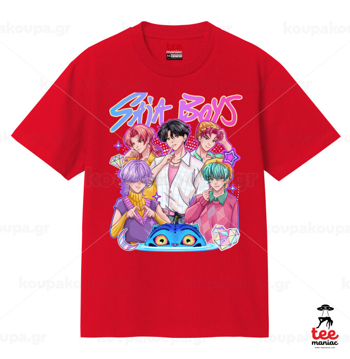Huntrix Saja Boys, Κλασικό T-Shirt, διπλής ραφής, χωρίς πλευρικές ραφές ΚΟΚΚΙΝΟ από 100% βαμβάκι. Vegan & OEKO-TEX πιστοποιημένο.