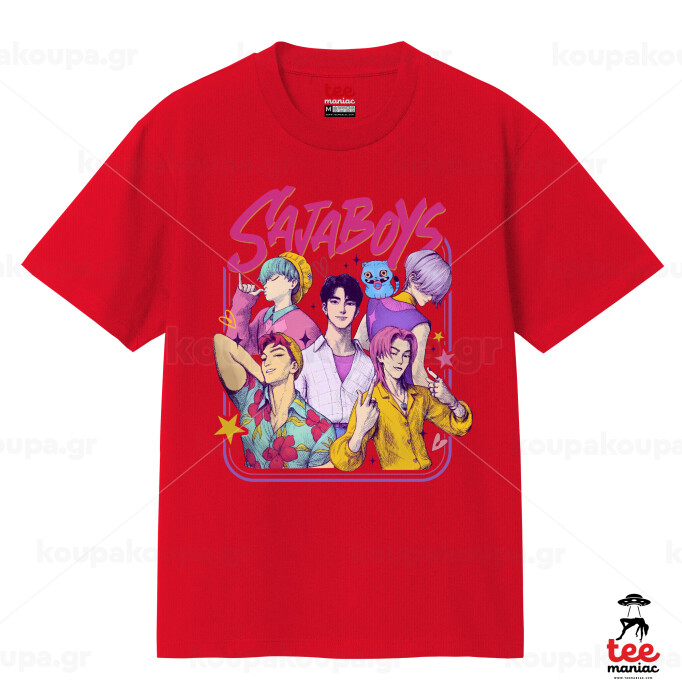 Huntrix Saja Boys, Κλασικό T-Shirt, διπλής ραφής, χωρίς πλευρικές ραφές ΚΟΚΚΙΝΟ από 100% βαμβάκι. Vegan & OEKO-TEX πιστοποιημένο.