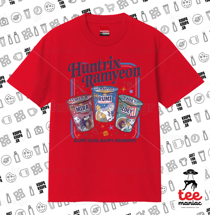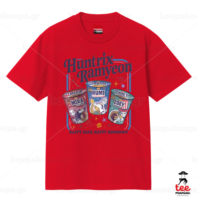 Ramyeon Huntrix, Κλασικό T-Shirt, διπλής ραφής, χωρίς πλευρικές ραφές ΚΟΚΚΙΝΟ από 100% βαμβάκι. Vegan & OEKO-TEX πιστοποιημένο.