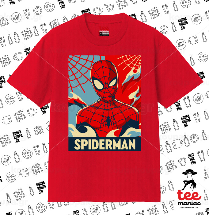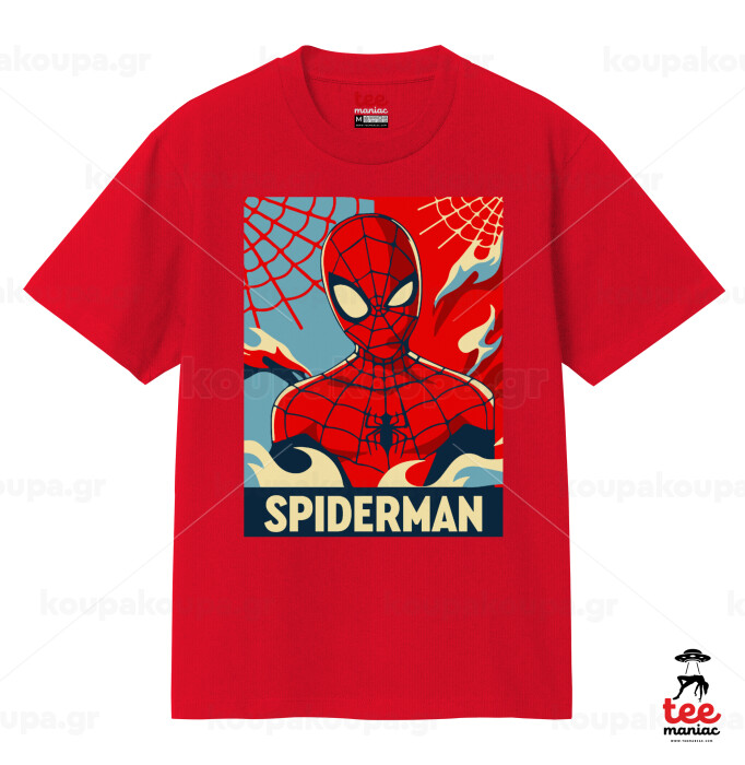 Spiderman kid, Κλασικό T-Shirt, διπλής ραφής, χωρίς πλευρικές ραφές ΚΟΚΚΙΝΟ από 100% βαμβάκι. Vegan & OEKO-TEX πιστοποιημένο.