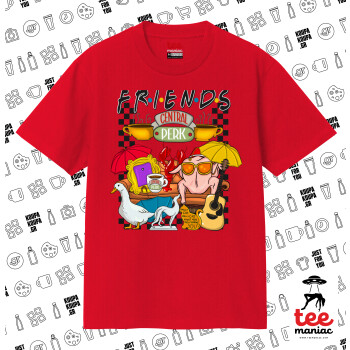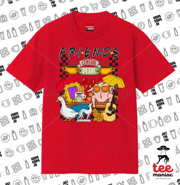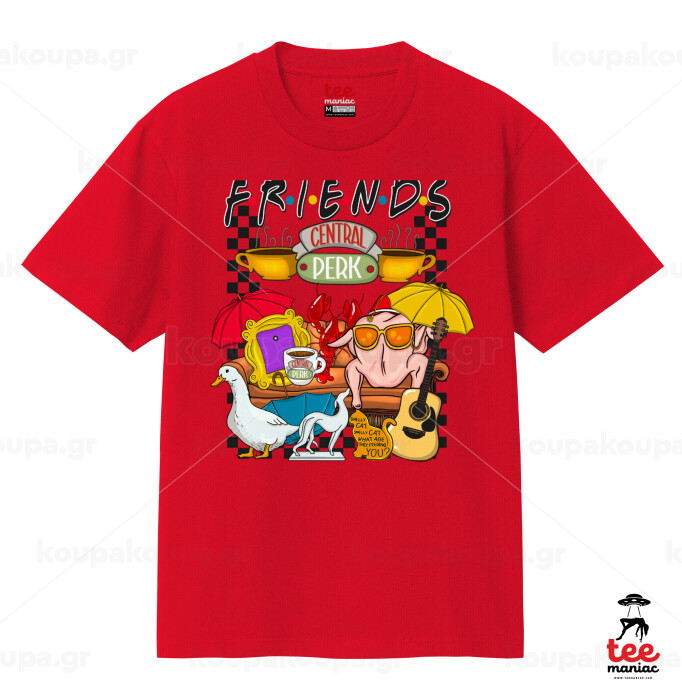 Friends, Κλασικό T-Shirt, διπλής ραφής, χωρίς πλευρικές ραφές ΚΟΚΚΙΝΟ από 100% βαμβάκι. Vegan & OEKO-TEX πιστοποιημένο.