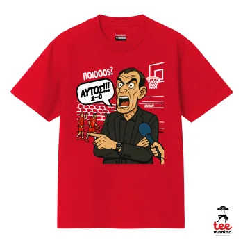 Μπαρτζό, Ποιος? Αυτός!!! 1-0, Κλασικό T-Shirt, διπλής ραφής, χωρίς πλευρικές ραφές ΚΟΚΚΙΝΟ από 100% βαμβάκι. Vegan & OEKO-TEX πιστοποιημένο.