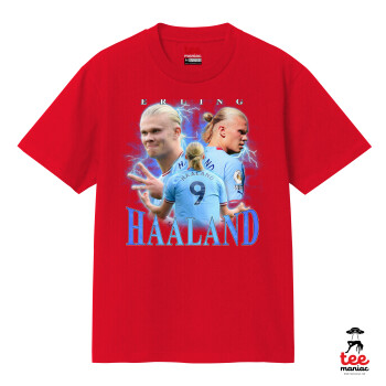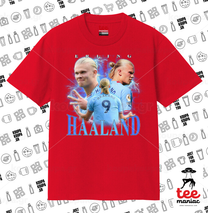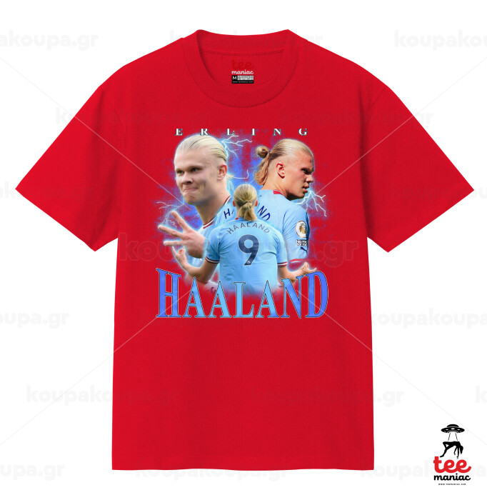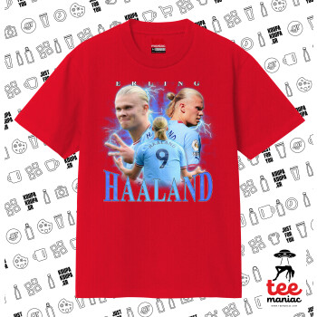 Erling Haaland, Κλασικό T-Shirt, διπλής ραφής, χωρίς πλευρικές ραφές ΚΟΚΚΙΝΟ από 100% βαμβάκι. Vegan & OEKO-TEX πιστοποιημένο.