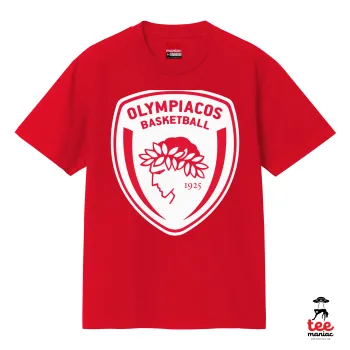 Olympiacos B.C., Κλασικό T-Shirt, διπλής ραφής, χωρίς πλευρικές ραφές ΚΟΚΚΙΝΟ από 100% βαμβάκι. Vegan & OEKO-TEX πιστοποιημένο.