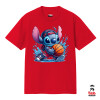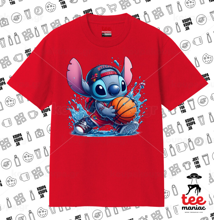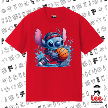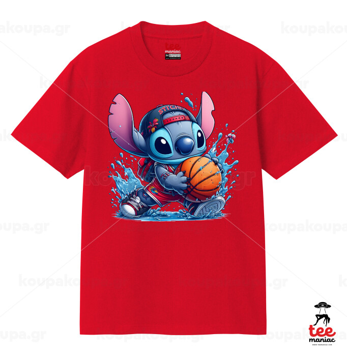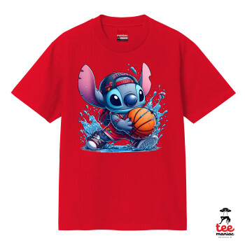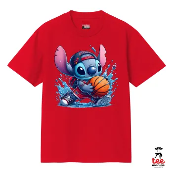 Stitch Basketball, Κλασικό T-Shirt, διπλής ραφής, χωρίς πλευρικές ραφές ΚΟΚΚΙΝΟ από 100% βαμβάκι. Vegan & OEKO-TEX πιστοποιημένο.