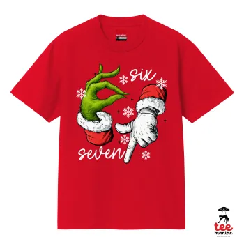 Christmas Meme SIX SEVEN (67), Κλασικό T-Shirt, διπλής ραφής, χωρίς πλευρικές ραφές ΚΟΚΚΙΝΟ από 100% βαμβάκι. Vegan & OEKO-TEX πιστοποιημένο.