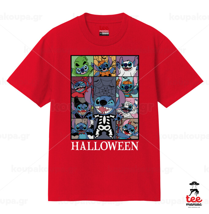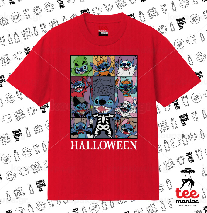 Stitch Halloween, Κλασικό T-Shirt, διπλής ραφής, χωρίς πλευρικές ραφές ΚΟΚΚΙΝΟ από 100% βαμβάκι. Vegan & OEKO-TEX πιστοποιημένο.