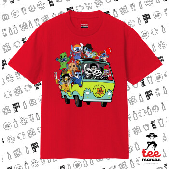 Stitch Halloween scooby car, Κλασικό T-Shirt, διπλής ραφής, χωρίς πλευρικές ραφές ΚΟΚΚΙΝΟ από 100% βαμβάκι. Vegan & OEKO-TEX πιστοποιημένο.