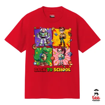 Back to the School Buzz & Friends, Κλασικό T-Shirt, διπλής ραφής, χωρίς πλευρικές ραφές ΚΟΚΚΙΝΟ από 100% βαμβάκι. Vegan & OEKO-TEX πιστοποιημένο.