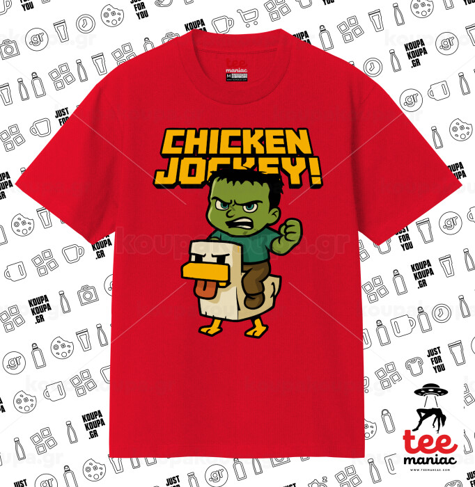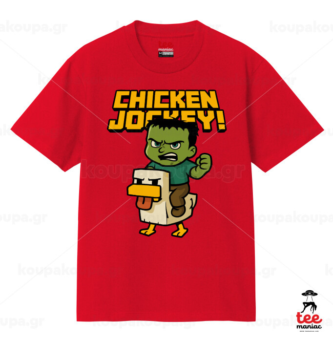 Chicken Jockey, Κλασικό T-Shirt, διπλής ραφής, χωρίς πλευρικές ραφές ΚΟΚΚΙΝΟ από 100% βαμβάκι. Vegan & OEKO-TEX πιστοποιημένο.