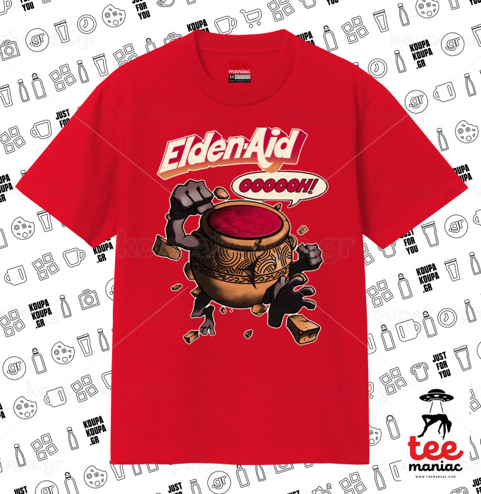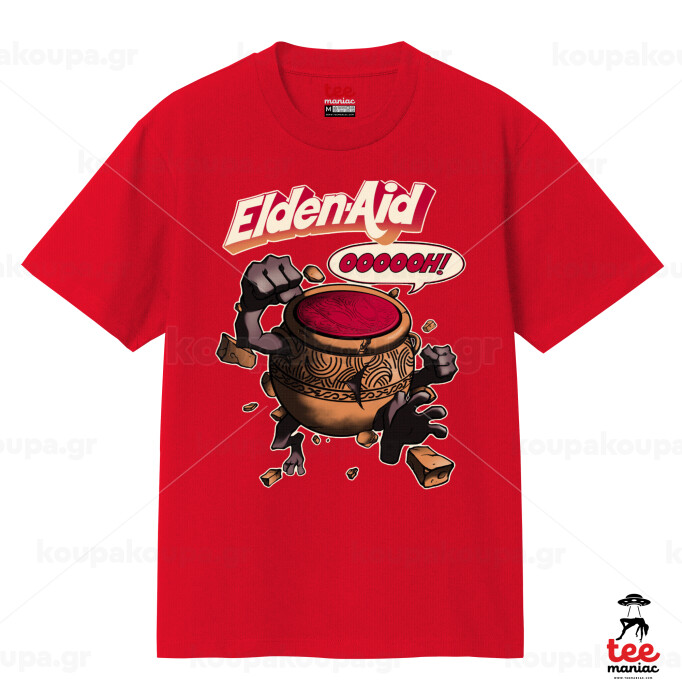 Elden-Aid, Elden Ring inspired , Κλασικό T-Shirt, διπλής ραφής, χωρίς πλευρικές ραφές ΚΟΚΚΙΝΟ από 100% βαμβάκι. Vegan & OEKO-TEX πιστοποιημένο.