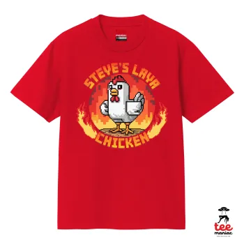 Steve's Lava Chicken, Κλασικό T-Shirt, διπλής ραφής, χωρίς πλευρικές ραφές ΚΟΚΚΙΝΟ από 100% βαμβάκι. Vegan & OEKO-TEX πιστοποιημένο.