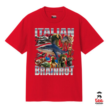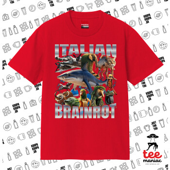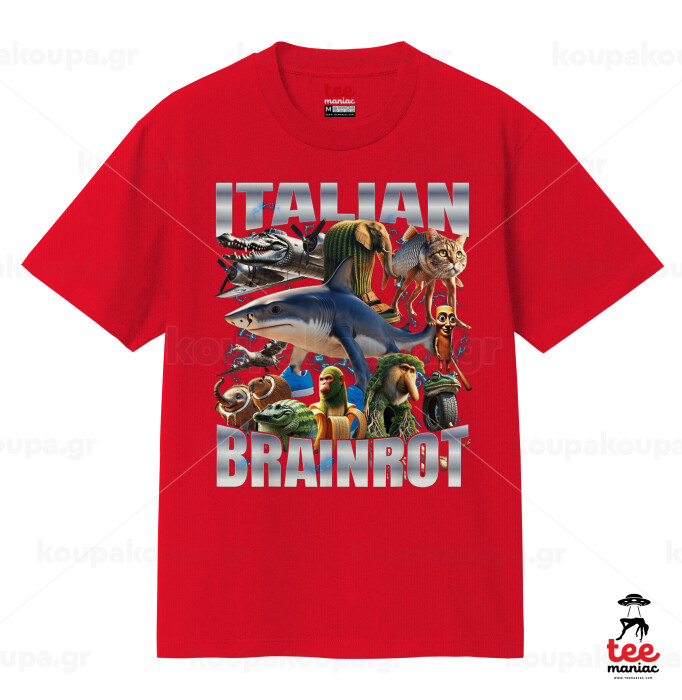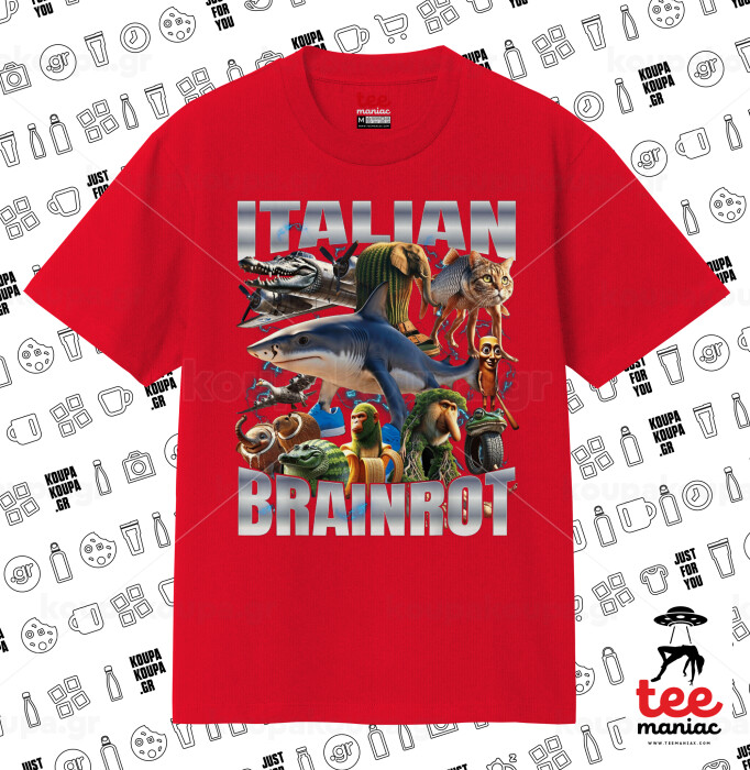 Italian Brainrot, Κλασικό T-Shirt, διπλής ραφής, χωρίς πλευρικές ραφές ΚΟΚΚΙΝΟ από 100% βαμβάκι. Vegan & OEKO-TEX πιστοποιημένο.