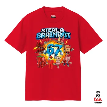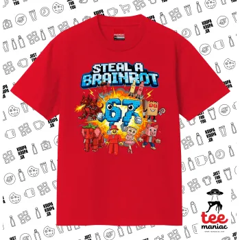 Steal a Brainrot 67 Roblox Style, Κλασικό T-Shirt, διπλής ραφής, χωρίς πλευρικές ραφές ΚΟΚΚΙΝΟ από 100% βαμβάκι. Vegan & OEKO-TEX πιστοποιημένο.