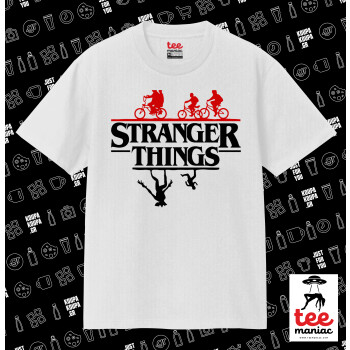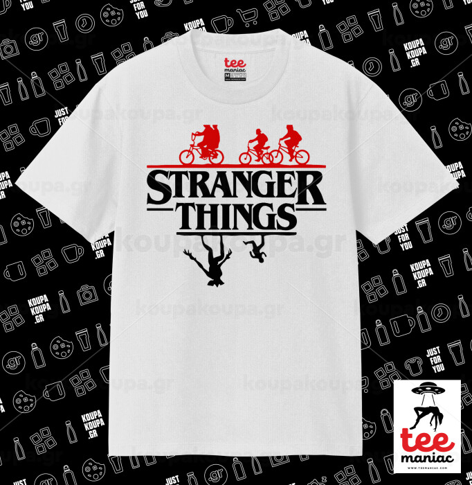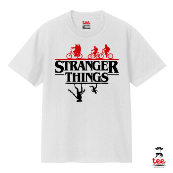 Stranger Things upside down, Κλασικό T-Shirt, διπλής ραφής, χωρίς πλευρικές ραφές ΛΕΥΚΟ από 100% βαμβάκι. Vegan & OEKO-TEX πιστοποιημένο.
