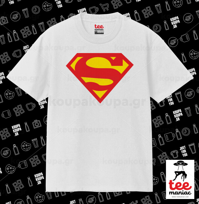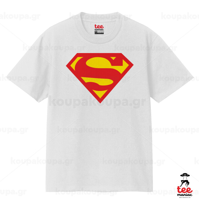Superman, Κλασικό T-Shirt, διπλής ραφής, χωρίς πλευρικές ραφές ΛΕΥΚΟ από 100% βαμβάκι. Vegan & OEKO-TEX πιστοποιημένο.