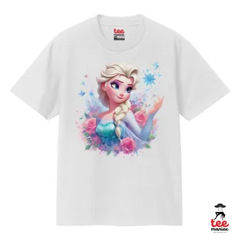 Elsa Princess, Κλασικό T-Shirt, διπλής ραφής, χωρίς πλευρικές ραφές ΛΕΥΚΟ από 100% βαμβάκι. Vegan & OEKO-TEX πιστοποιημένο.
