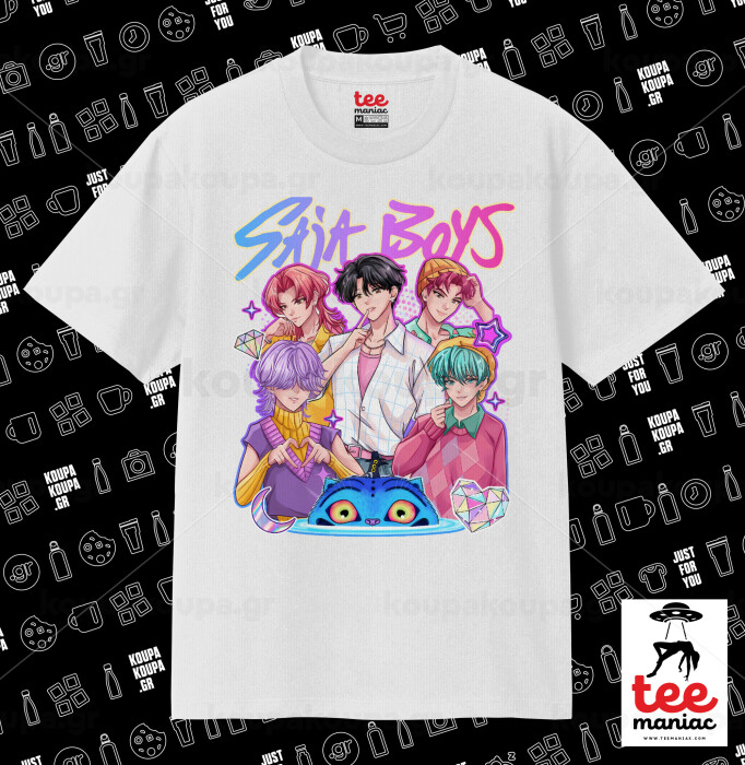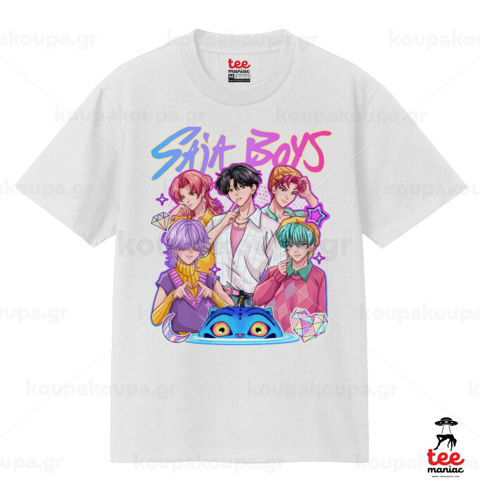 Huntrix Saja Boys, Κλασικό T-Shirt, διπλής ραφής, χωρίς πλευρικές ραφές ΛΕΥΚΟ από 100% βαμβάκι. Vegan & OEKO-TEX πιστοποιημένο.