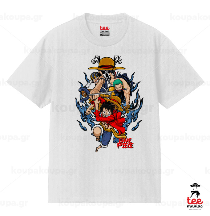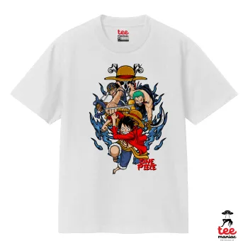 One Piece, Κλασικό T-Shirt, διπλής ραφής, χωρίς πλευρικές ραφές ΛΕΥΚΟ από 100% βαμβάκι. Vegan & OEKO-TEX πιστοποιημένο.