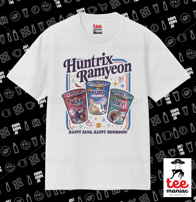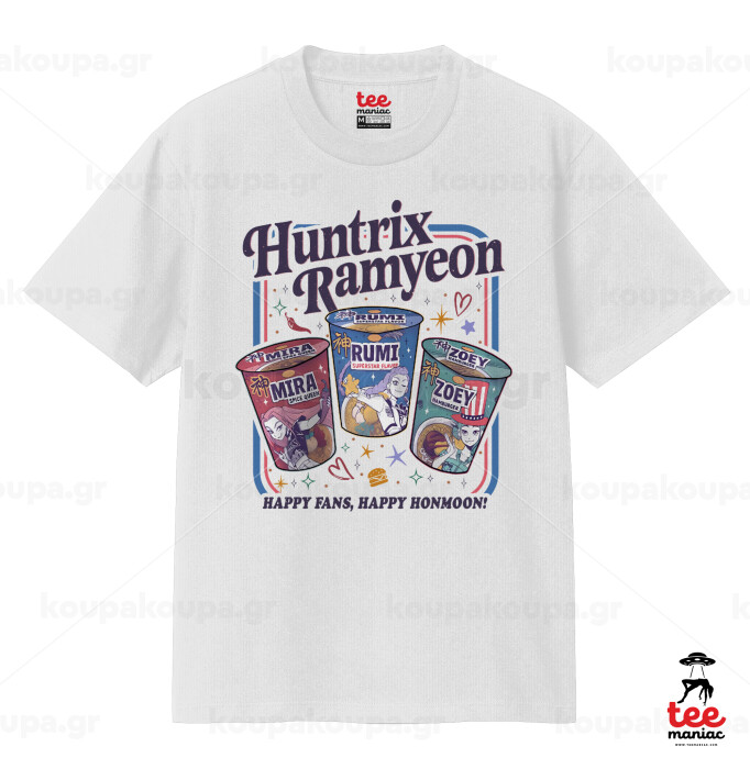 Ramyeon Huntrix, Κλασικό T-Shirt, διπλής ραφής, χωρίς πλευρικές ραφές ΛΕΥΚΟ από 100% βαμβάκι. Vegan & OEKO-TEX πιστοποιημένο.