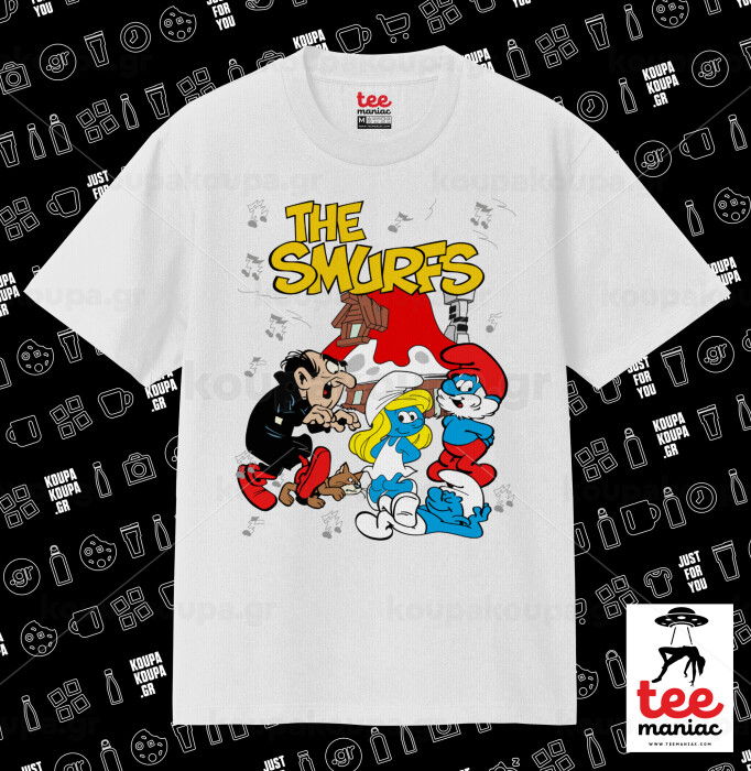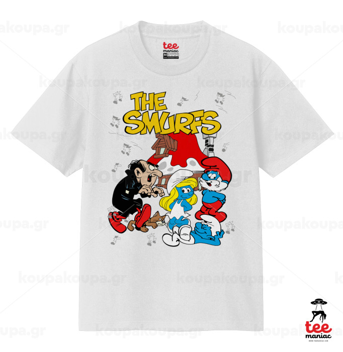 The smurfs, Κλασικό T-Shirt, διπλής ραφής, χωρίς πλευρικές ραφές ΛΕΥΚΟ από 100% βαμβάκι. Vegan & OEKO-TEX πιστοποιημένο.