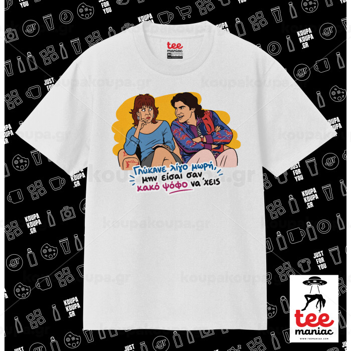Γλύκανε λίγο, Κλασικό T-Shirt, διπλής ραφής, χωρίς πλευρικές ραφές ΛΕΥΚΟ από 100% βαμβάκι. Vegan & OEKO-TEX πιστοποιημένο.