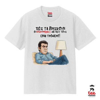 ΠΩΣ ΤΑ ΒΡΙΣΚΟΥΝ ΟΙ ΒΛΑ....ΝΟΙ ΜΕΤΑΞΥ ΤΟΥΣ, ΕΙΝΑΙ ΤΡΟΜΕΡΟ!!!, Κλασικό T-Shirt, διπλής ραφής, χωρίς πλευρικές ραφές ΛΕΥΚΟ από 100% βαμβάκι. Vegan & OEKO-TEX πιστοποιημένο.