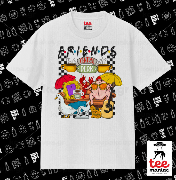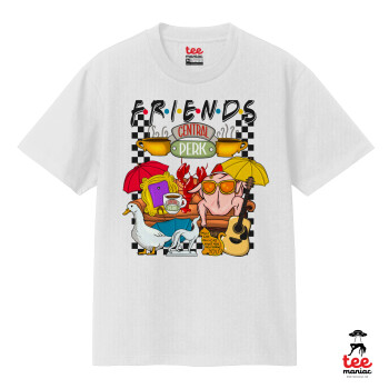 Friends, Κλασικό T-Shirt, διπλής ραφής, χωρίς πλευρικές ραφές ΛΕΥΚΟ από 100% βαμβάκι. Vegan & OEKO-TEX πιστοποιημένο.