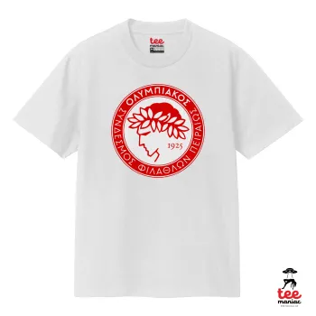 Ολυμπιακός, Κλασικό T-Shirt, διπλής ραφής, χωρίς πλευρικές ραφές ΛΕΥΚΟ από 100% βαμβάκι. Vegan & OEKO-TEX πιστοποιημένο.