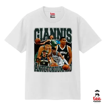 Giannis Antetokounmpo, Κλασικό T-Shirt, διπλής ραφής, χωρίς πλευρικές ραφές ΛΕΥΚΟ από 100% βαμβάκι. Vegan & OEKO-TEX πιστοποιημένο.