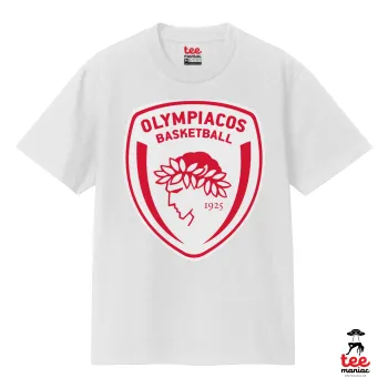 Olympiacos B.C., Κλασικό T-Shirt, διπλής ραφής, χωρίς πλευρικές ραφές ΛΕΥΚΟ από 100% βαμβάκι. Vegan & OEKO-TEX πιστοποιημένο.
